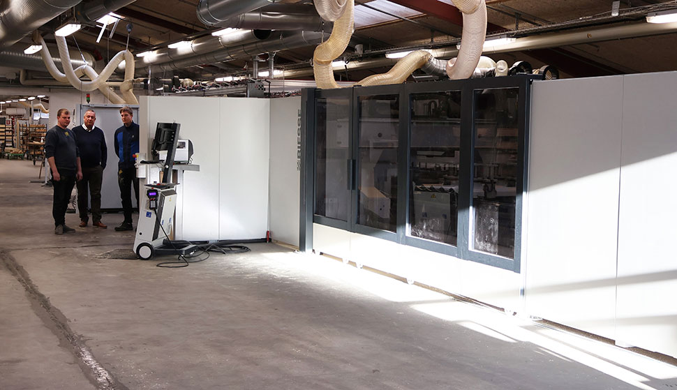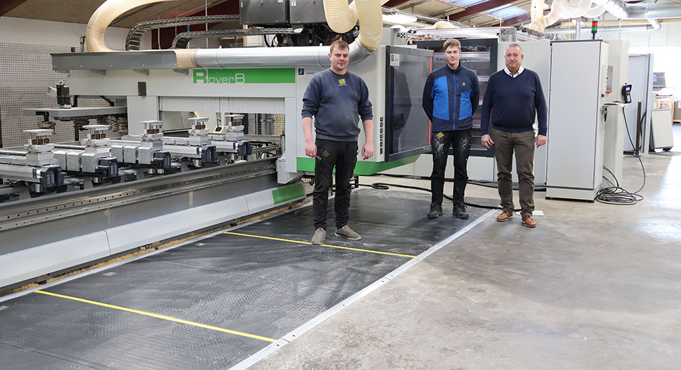 Til daglig står Leo i spidsen for Linolie Døre & Vinduer, men i forbindelse med indkøringen af maskinerne har han givet stafetten videre til næste generation nemlig produktionsleder Frederik Holm Madsen og installationsansvarlig Lars Knudsen. Begge var på besøg hos Biesse i Italien forud for købet – en tur, de ser tilbage på som en stor inspiration til en moderne produktion. De roser desuden Biesse maskinerne for deres brugervenlige og intuitive software.
