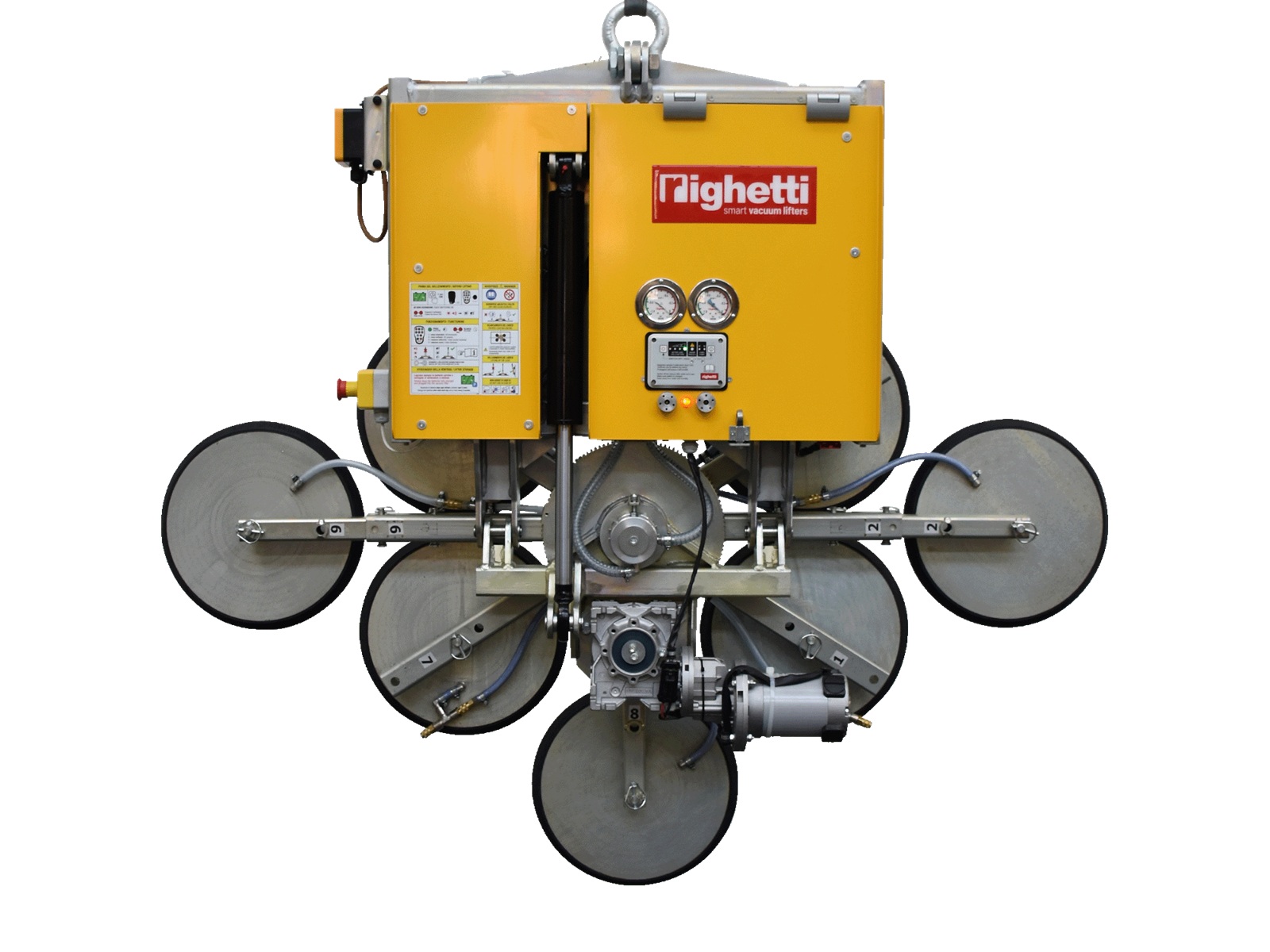 GLE4+8 d4 fra Righetti er en batteridrevet vakuumløfter for håndtering av svært tunge glassplater på byggeplass og i montasjesituasjoner. Løfteren er konstruert for profesjonell bruk der høy løftekapasitet, presis kontroll og maksimal sikkerhet er avgjørende.